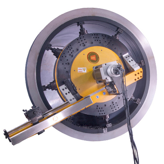 SSYI內(nèi)漲式全數(shù)控法蘭加工中心,是內(nèi)漲式法蘭端面加工機(jī)的增強(qiáng)型,針對法蘭面和管道端面復(fù)合型坡口而設(shè)計(jì),采用伺服電機(jī)驅(qū)動(dòng),澳太獨(dú)創(chuàng)數(shù)控系統(tǒng),實(shí)現(xiàn)軸向和徑向聯(lián)動(dòng)進(jìn)給加工,刀具加工軌跡通過數(shù)控編程控制,讓野外現(xiàn)場的法蘭和管道復(fù)雜型維修及施工變得更容易
